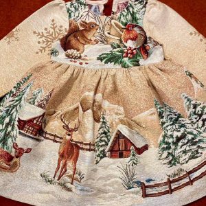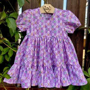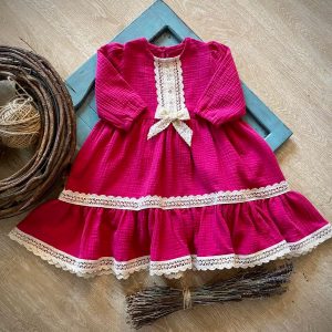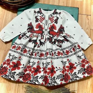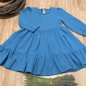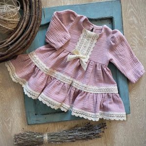 Rochie volane din in degrade galben maro, accesorizata cu broderii decorative si inima brodata
